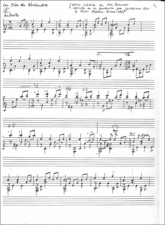 Il manoscritto era andato perduto ma Leo aveva uno spartito che due chitarristi cileni avevano ricavato a orecchio da una sua registrazione fatta a Cuba